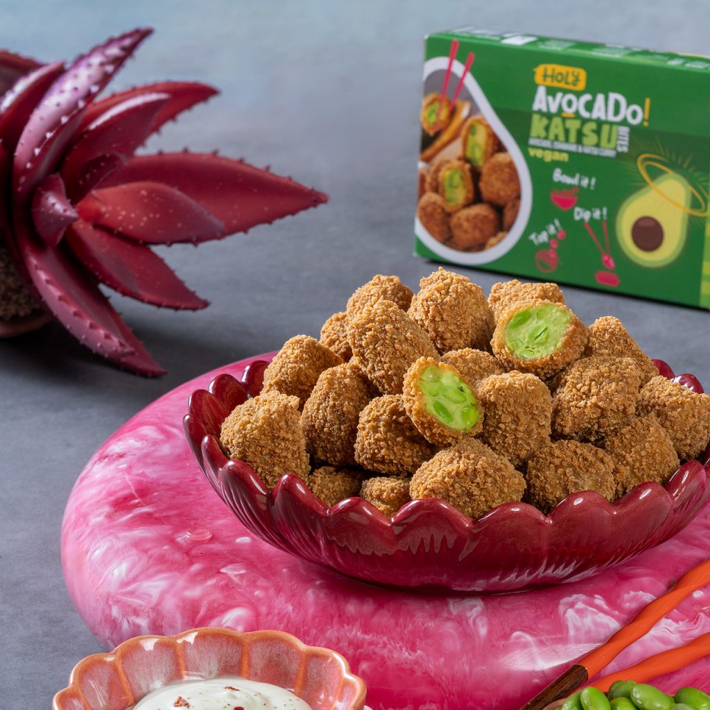 Die Avokatsu® bites mit Avocado und Edamame-Bohnen sind umhüllt von einer knusprigen Katsu-Curry-Panade.